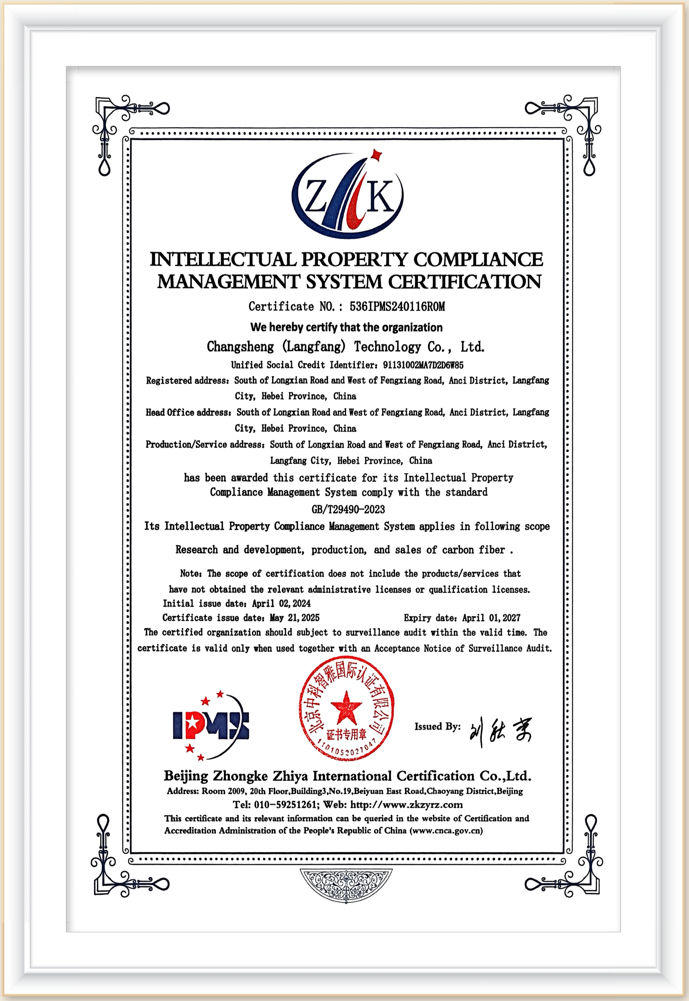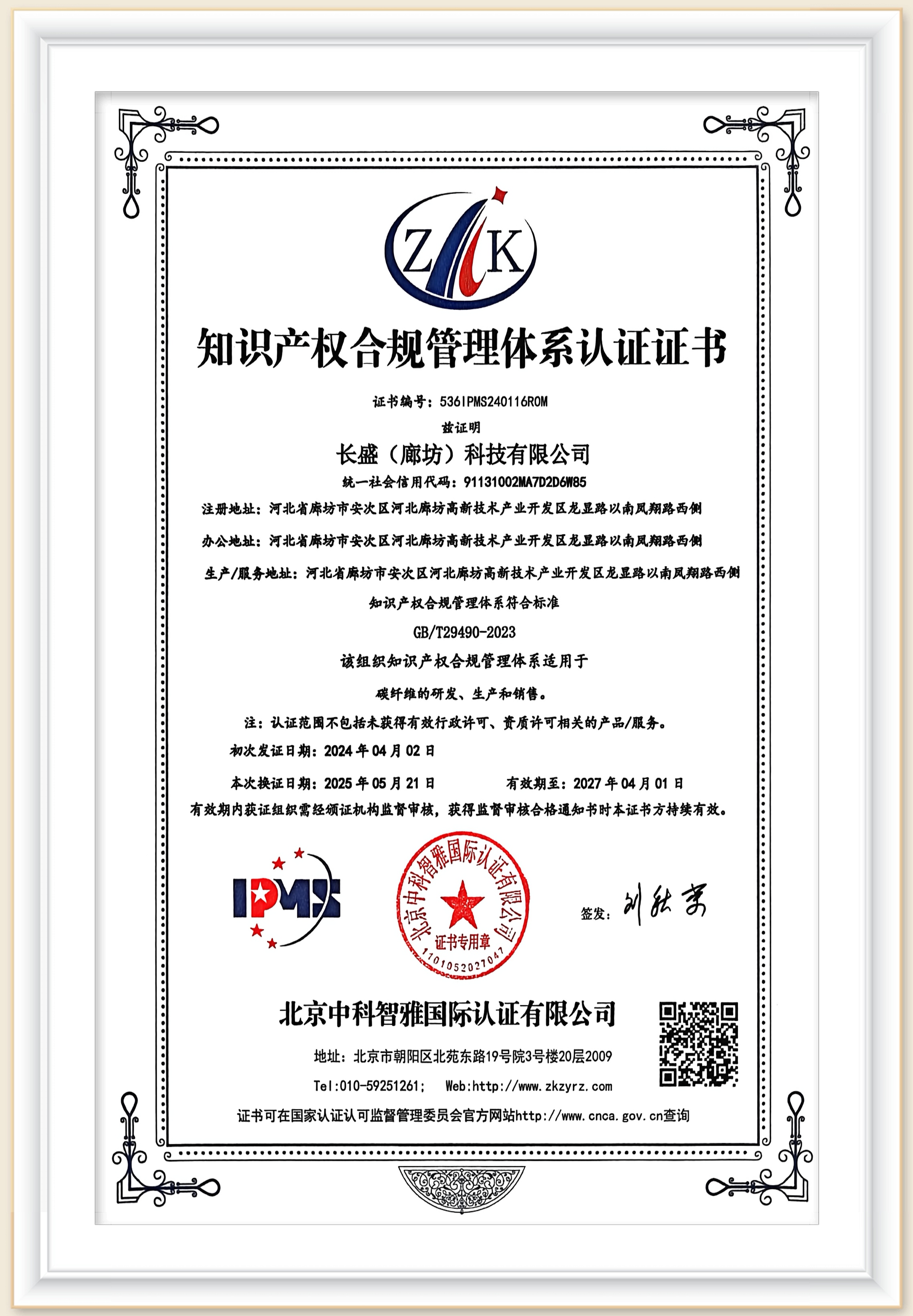 4 | 知识产权管理体系认证证书 | 规范知识产权管理流程,增强企业知识产权资产的商业价值。 |